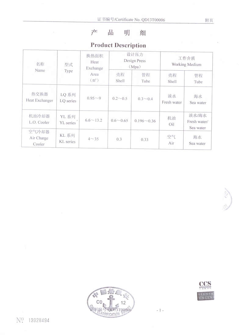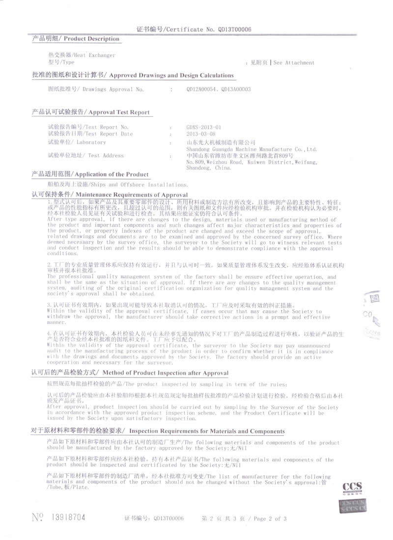 熱交換器-型式認(rèn)可證書(shū)